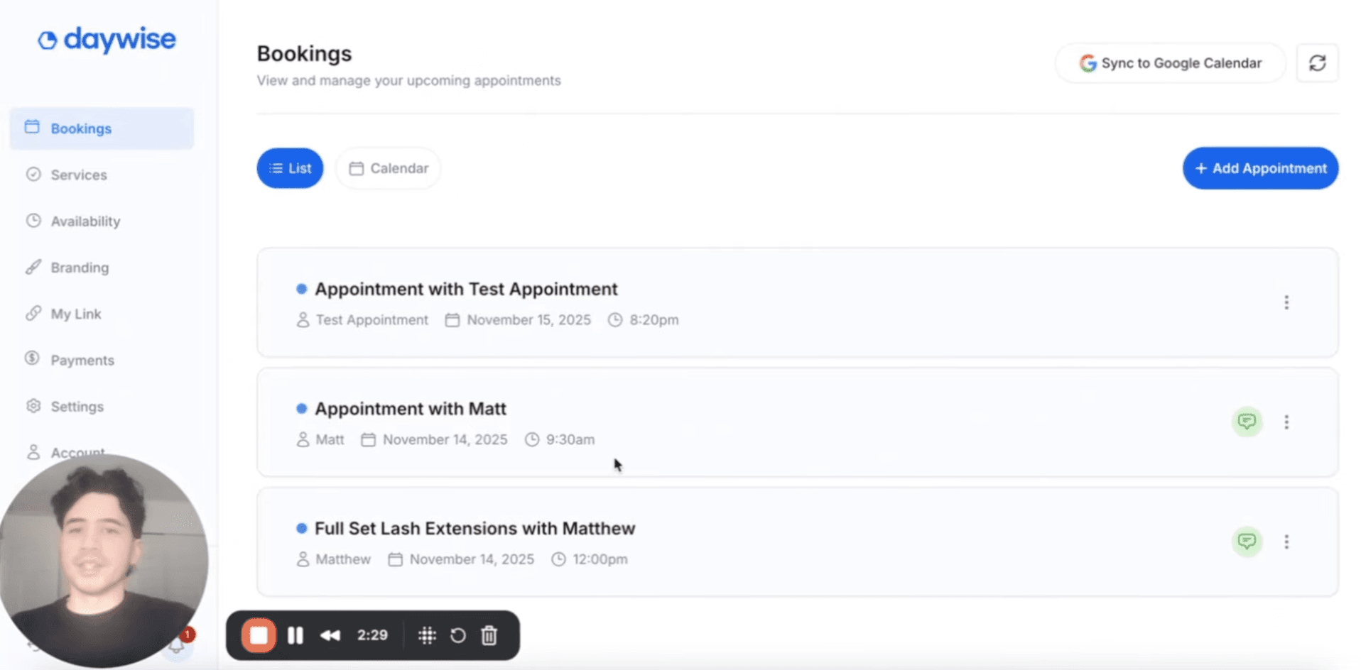Daywise is the simplest, easiest booking app for solo businesses. Hopefully you feel that when you use it, and I hope it helps you as much as it’s helped me.